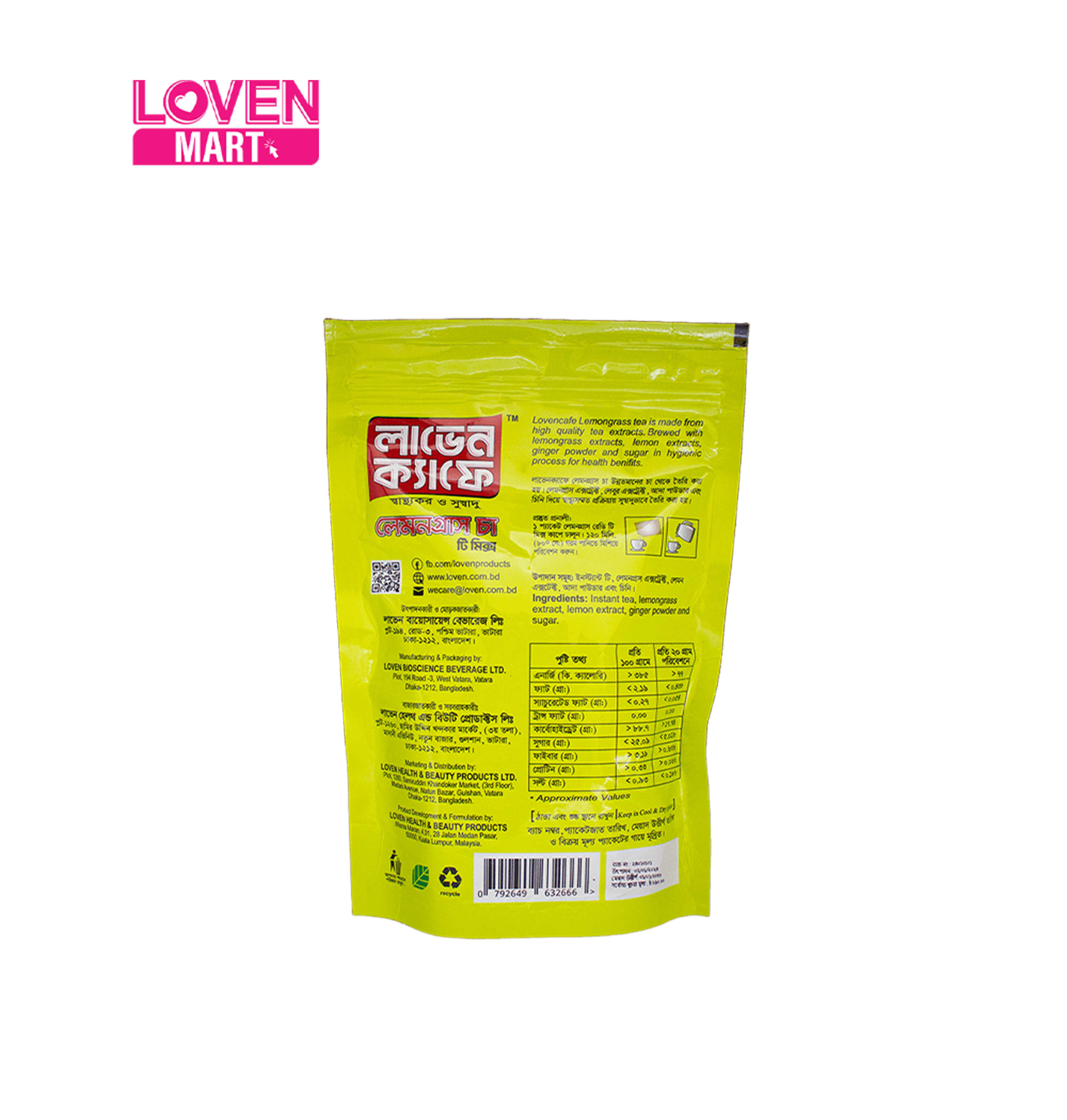 আপনার ক্লান্তি দূর করতে এবং মনকে সতেজ করতে চান? Loven Café নিয়ে এসেছে লেমনগ্রাস টি প্রিমিক্স—যা লেমনগ্রাস, সতেজ লেবু ও উষ্ণ আদার গুণাগুণে সমৃদ্ধ।